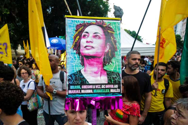 Ato no Rio de Janeiro reuniu centenas de pessoas para lembrar um ano do assassinato de Marielle Franco e do motorista Anderson Gomes