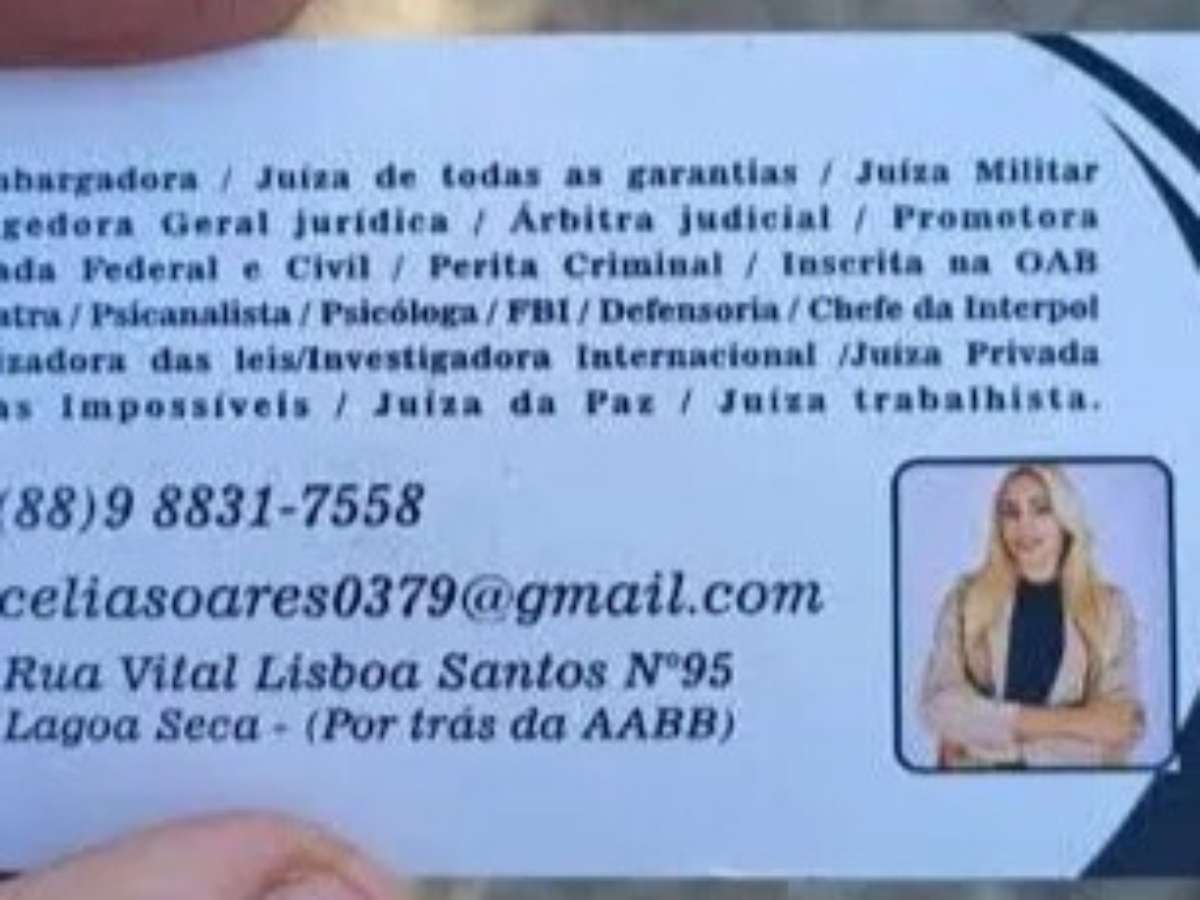 Uma mulher de 46 anos foi presa em flagrante em Mossoró (RN) na última quarta-feira, 20, por uso de documentos falsos e se dizer ocupante de diferentes cargos públicos. Identificada como Célia Soares de Brito, natural de Juazeiro do Norte (CE), ela afirmava ser desembargadora, promotora, juíza, advogada, agente do FBI, chefe da Interpol e até “guardiã da democracia mundial”.