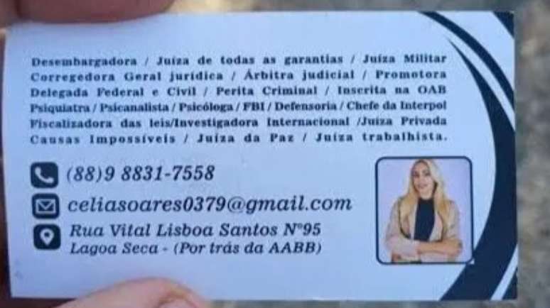 No imóvel no bairro Lagoa Seca, onde os cartões de visita de Célia indicam ser seu escritório, há uma placa onde ela se identifica como “chefe fiscalizadora dos ministros do STF”. Em 2020, Célia foi candidata a vereadora em Juazeiro pelo Partido Verde (PV), mas só recebeu 19 votos.