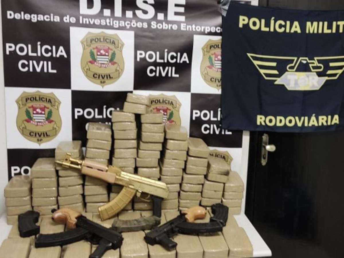Polícia apreende fuzil banhado a ouro e 100 tijolos de cocaína no interior de SP