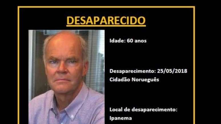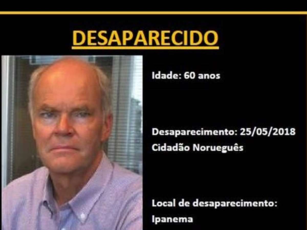 Torkil Prytz Tyvold, que trabalha para a petrolífera Hydro, desapareceu em 25 de maio, em Ipanema, na zona sul da cidade