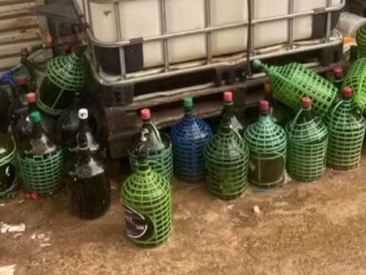 O responsável pelo esquema foi localizado em outro endereço e confessou o crime, tentando justificar que se tratava de uma “produção artesanal”. No imóvel, os policiais apreenderam 210 litros de destilados armazenados em galões de 20 e 50 litros, além de 38 garrafas com bebida pronta para venda, 1.771 tampas, 1.252 rolhas de madeira, rótulos, corantes, pigmentos, dois celulares e um caderno de anotações comerciais.