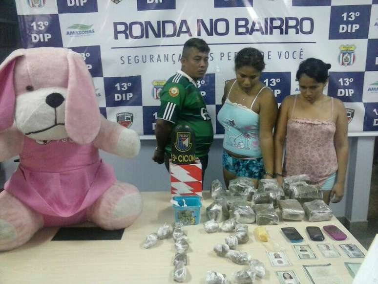 Segundo os policiais da 13ª Companhia Interativa Comunitária (Cicom), ao chegarem ao local, o quarto de uma estância na rua Espigão, no bairro Alfredo Nascimento, zona norte de Manaus, os suspeitos tentaram negar a existência da droga. Após revista no local, a PM percebeu um cheiro forte de maconha exalando do cachorro de pelúcia. Dentro havia 10 kg da droga prensada.