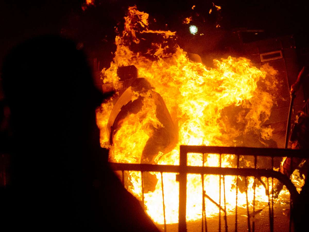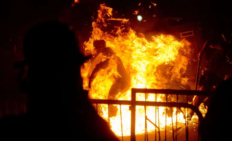22 de julho - Policial é engolido por bola de fogo após ser atingido por coquetel Molotov