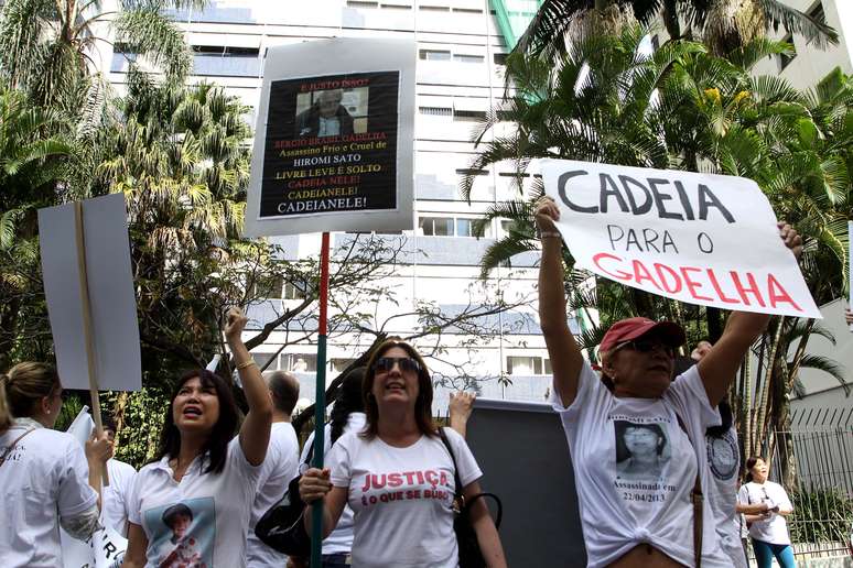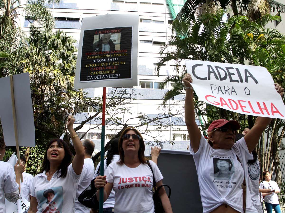 Familiares e amigos da secretária Hiromi Sato fizeram um protesto neste domingo em frente ao apartamento do advogado Sérgio Brasil Gadelha, ex-marido da vítima
