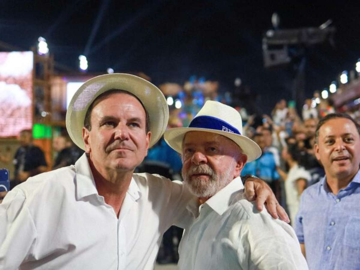 Lula ao lado de Eduardo Paes na pista durante o desfile da Acadêmicos de Niterói