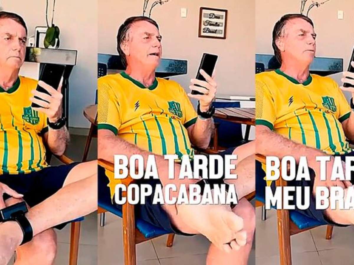 "Boa tarde Copacabana, boa tarde meu Brasil, um abraço a todos. É pela nossa liberdade, estamos juntos. Obrigado a todos, é pela nossa liberdade, pelo nosso futuro, pelo nosso Brasil. Sempre estaremos juntos. Valeu", disse Bolsonaro, se dirigindo aos manifestantes, no vídeo publicado pelo filho.