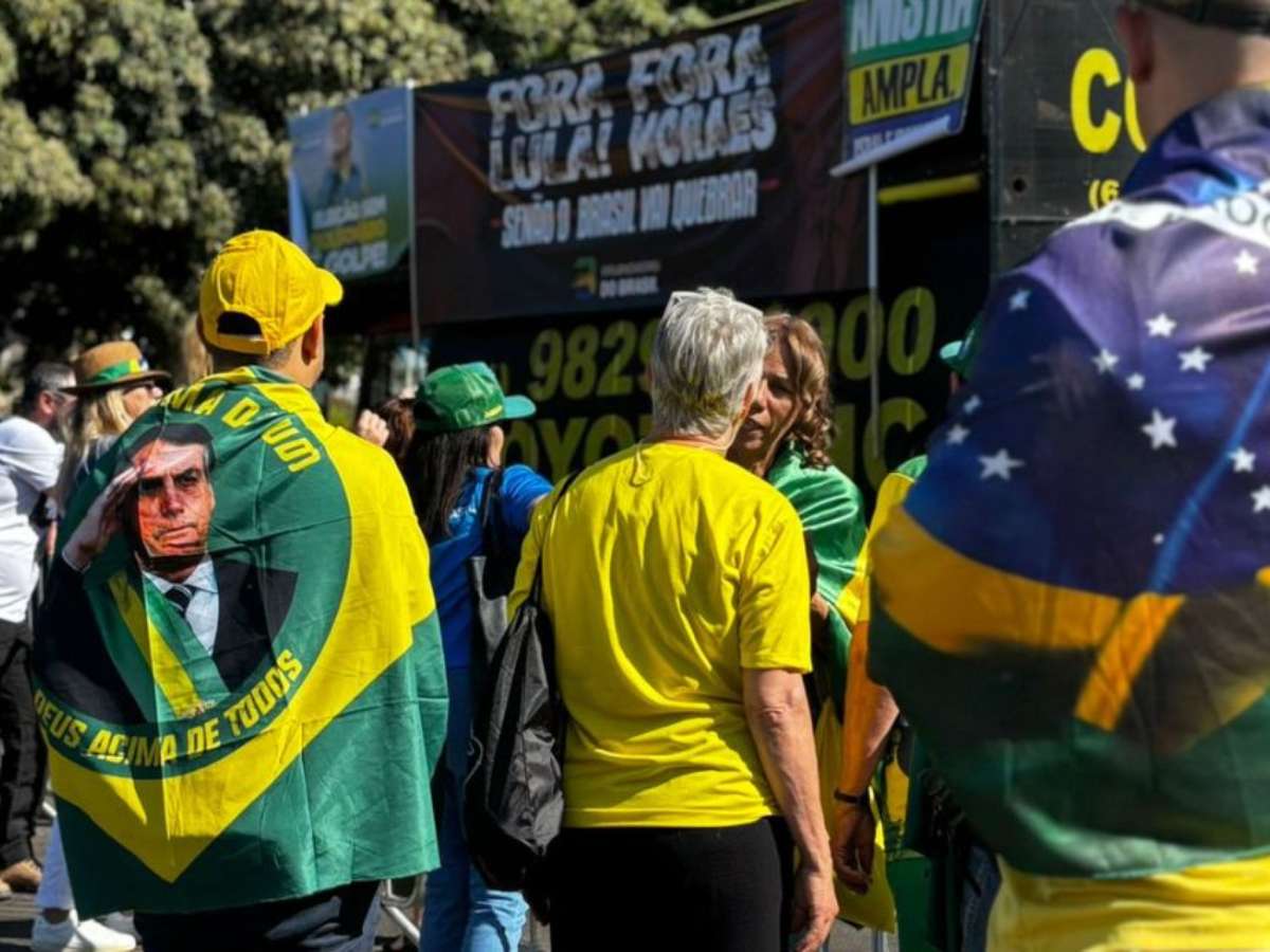 Apoiadores de Jair Bolsonaro realizaram um ato em Brasília pedindo sua participação nas eleições e anistia para bolsonaristas, enquanto processos no STF sobre sua suposta trama golpista avançam e divisões internas surgem no Congresso.