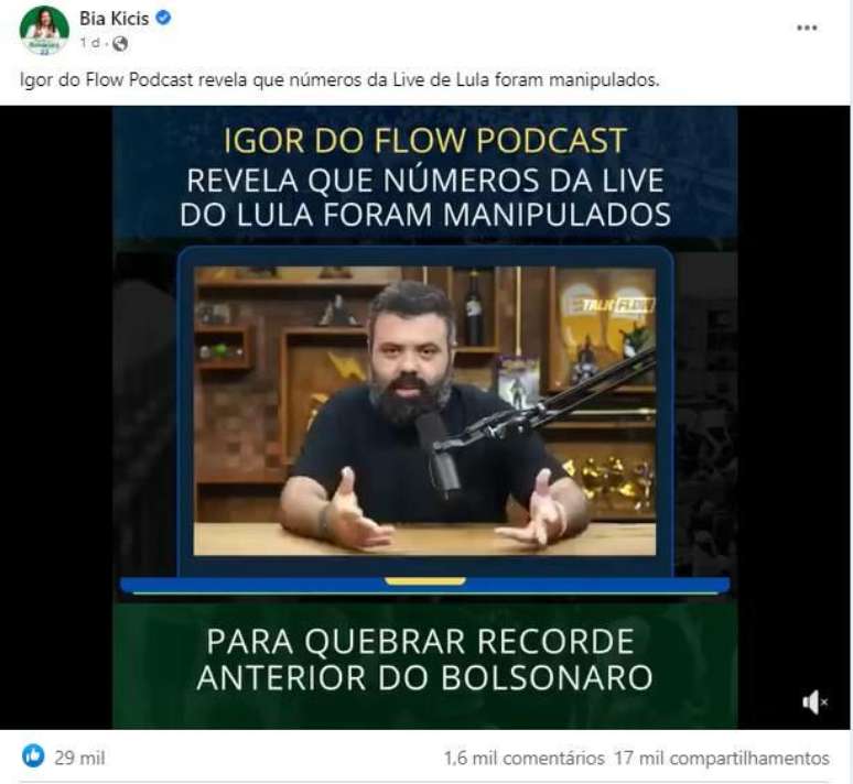 Os trechos editados, no entanto, omitem a fala seguinte de Igor, na qual ele afirma que os números inflados não equivalem necessariamente a visualizações fantasmas ou ao uso de robôs, mas a um comportamento comum de usuários em plataformas de vídeos. O apresentador diz ainda que o mesmo padrão pode ser observado nos dados das lives feitas com Jair Bolsonaro (PL) e com o ministro da Economia, Paulo Guedes.