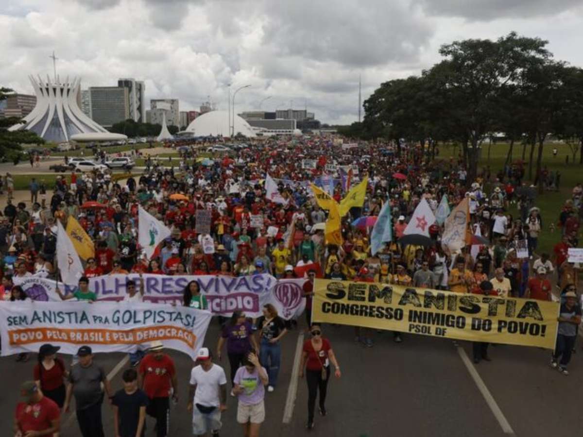 BRASÍLIA - Um ato na Esplanada dos Ministérios neste domingo, 14, reuniu manifestantes contrários à anistia aos condenados por tentativa de golpe de Estado. Convocado por partidos de esquerda, o protesto é parte de movimento realizado em diversas capitais neste fim de semana.