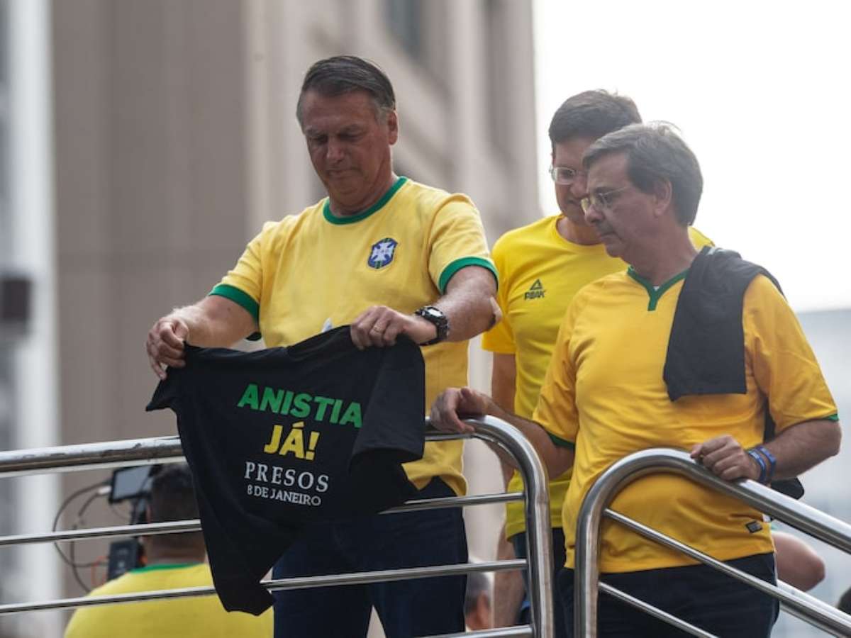 Também estão nas imagens a ex-primeira-dama Michelle Bolsonaro; o senador Magno Malta (PL-ES); os deputados federais Eduardo Bolsonaro (PL-SP), Nikolas Ferreira (PL-MG) e Gustavo Gayer (PL-GO) e o pastor evangélico Silas Malafaia.