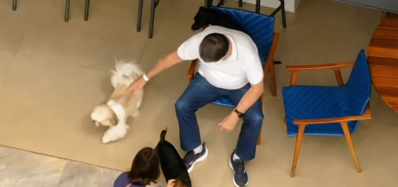 Bolsonaro chega em casa após receber alta e é flagrado com Michelle brincando com cachorros