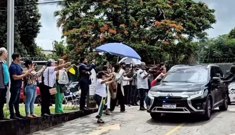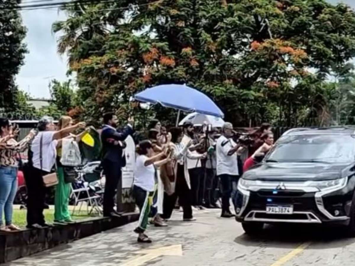 O comboio de viaturas da PF e da Polícia Militar do DF chegou ao hospital por volta das 11h20. Bolsonaro está acompanhado da ex-primeira-dama Michelle Bolsonaro.