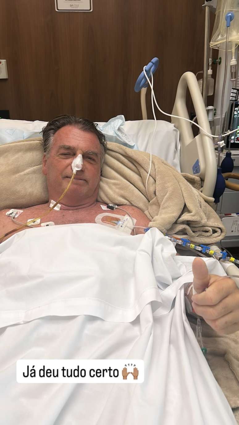 O ex-presidente afirmou nesta terça-feira, 15, em uma publicação no X (antigo Twitter), estar concentrado na recuperação da cirurgia que fez no intestino. Bolsonaro avaliou que a intervenção médica realizada no Hospital DF Star foi o "procedimento mais invasivo" a que já foi submetido desde a facada em 2018. A publicação do ex-presidente registra que as 48 horas seguintes à cirurgia são as mais importantes do pós-operatório.