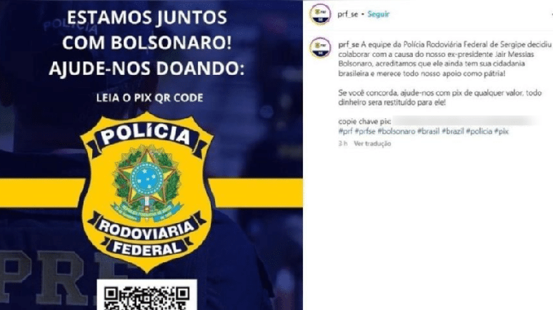 O ministro da Justiça, Flávio Dino, determinou a suspensão dos perfis regionais da Polícia Federal e da Polícia Rodoviária Federal (PRF) após o perfil oficial da PRF de Sergipe publicar um pedido de doações em dinheiro para o ex-presidente Jair Bolsonaro (PL). A corporação alega que o post foi feito em um ataque hacker.