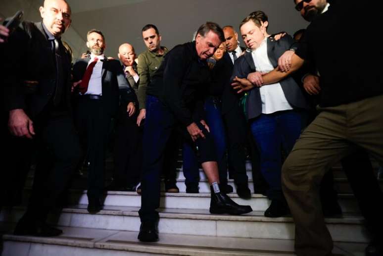 Após Jair Bolsonaro mostrar a jornalistas a tornozeleira eletrônica e afirmar que se tratava de "máxima humilhação", na saída da Câmara dos Deputados, na tarde de segunda-feira, 21, ao lado de aliados do PL, as imagens repercutiram na imprensa e nos perfis das redes sociais de aliados.