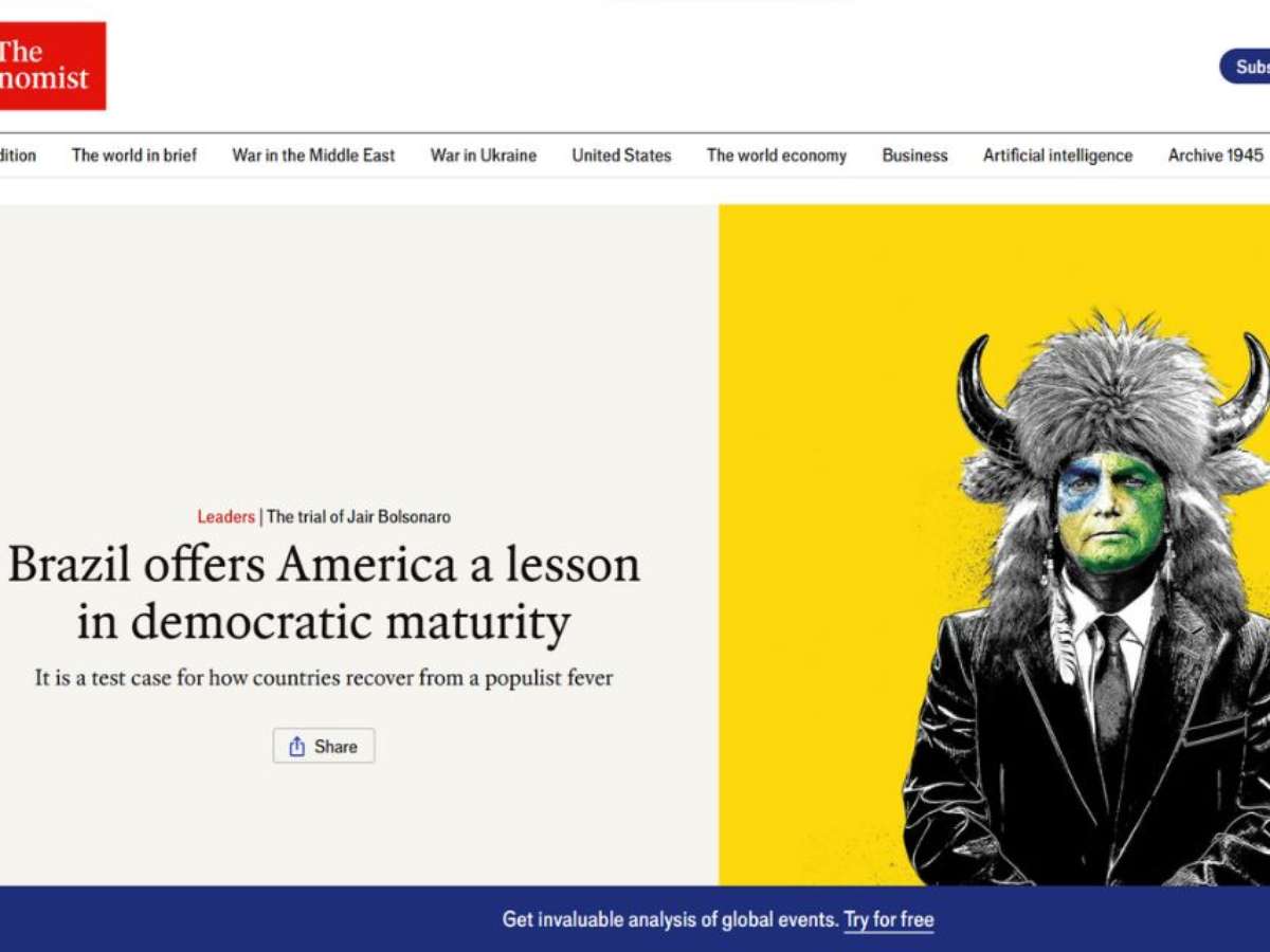 The Economist destaca o Brasil como exemplo de recuperação democrática, superando o populismo de Jair Bolsonaro, enquanto critica retrocessos nos EUA sob Donald Trump.