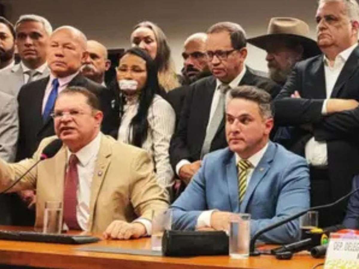 "Estamos aqui cancelando uma reunião com quórum, convocado pelo presidente da comissão [de Segurança], por uma decisão ilegal e antirregimental do presidente Hugo Motta, que nem está no Brasil", disse Sóstenes.