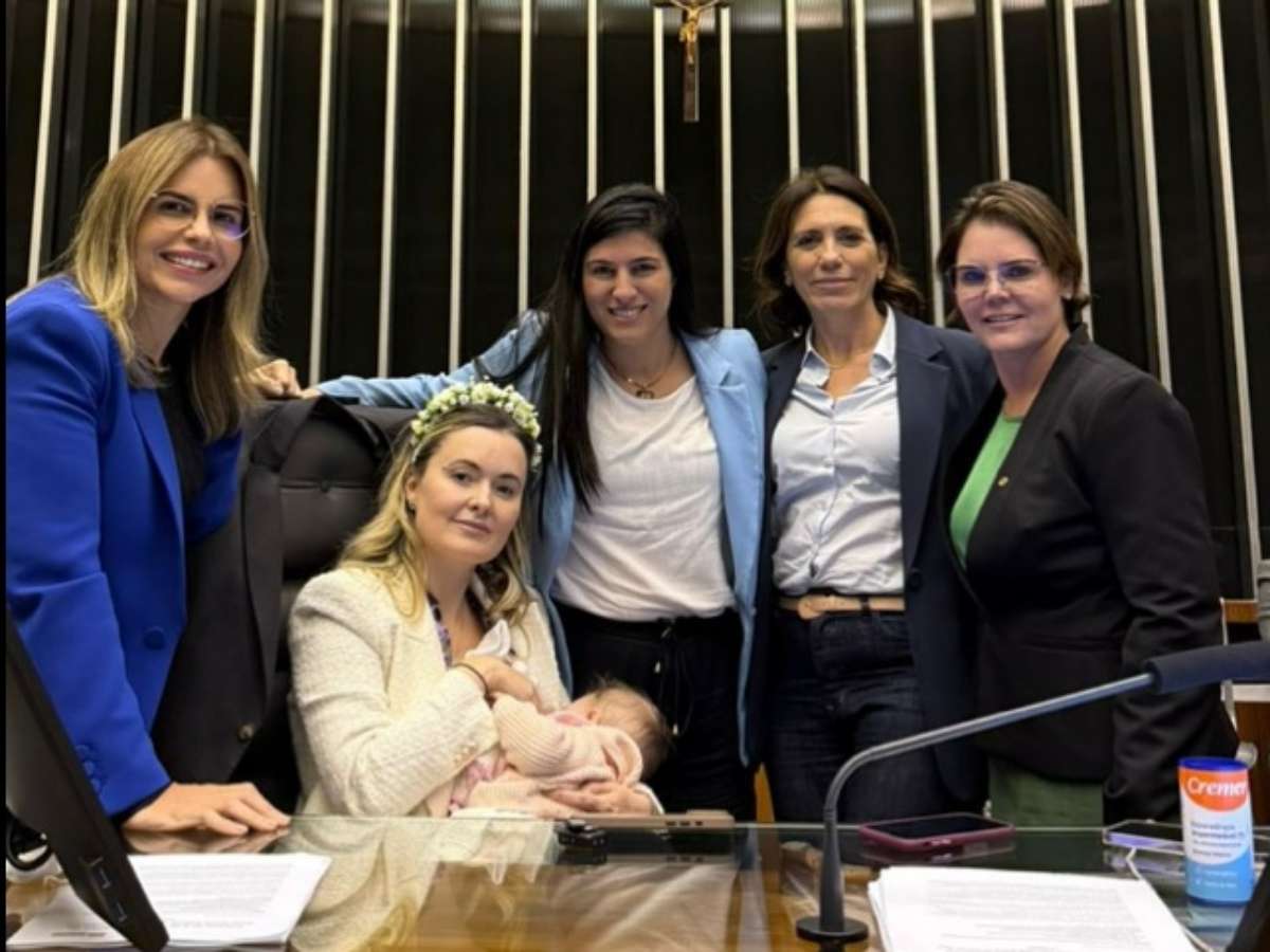 A deputada Julia Zanatta (PL-SC), alinhada ao ex-presidente Jair Bolsonaro, levou a sua filha de apenas quatro meses ao plenário da Câmara dos Deputados na noite desta quarta-feira, 6, durante a ocupação promovida por parlamentares da oposição.