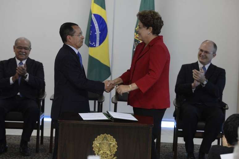 Dilma empossa Paulo Sérgio Passos como novo ministro dos Transportes; à esquerda, César Borges, novo titular de Portos