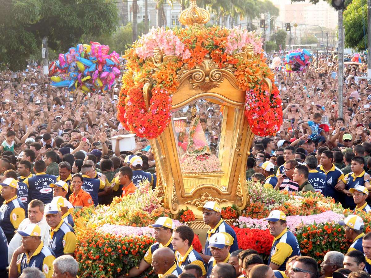 Durante o tradicional percurso em Belém, fogos de artifício, chuva de papel picado, apresentação de corais, mãos estendidas e aplausos foram apenas algumas das homenagens à Virgem de Nazaré.