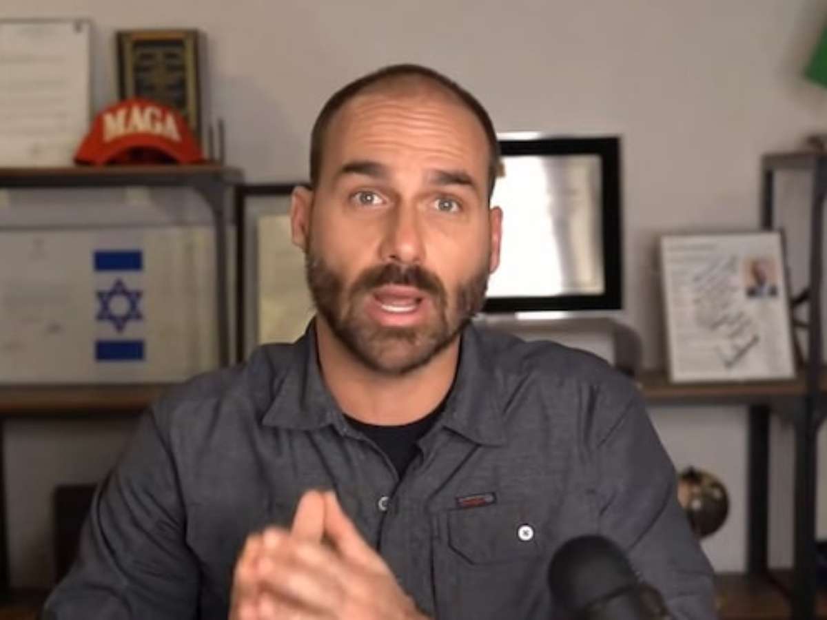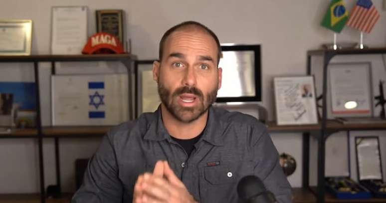 Eduardo Bolsonaro vive nos EUA desde o ano passado e perdeu o mandato por excesso de faltas nas sessões deliberativas da Câmara dos Deputados. Como não foi localizado para receber a notificação do processo pessoalmente, ele foi citado por edital, comunicado da ação penal por meio de uma publicação oficial.