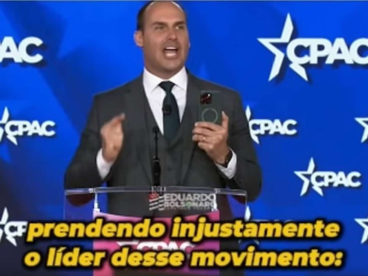 Anunciado no palco da Conferência de Ação Política Conservadora (CPAC, na sigla em inglês), Eduardo apareceu usando um aparelho celular em posição de filmagem e explicou o motivo. A CPAC reúne representantes da direita e da extrema direita no mundo.
