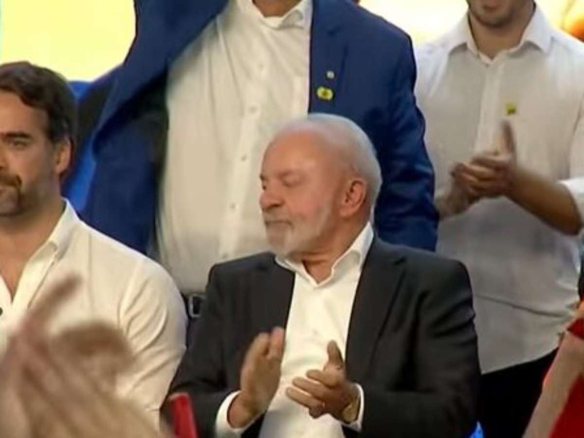 Enquanto Leite protestava contra as vaias, Lula, que estava próximo, fazia gestos para a plateia parar.