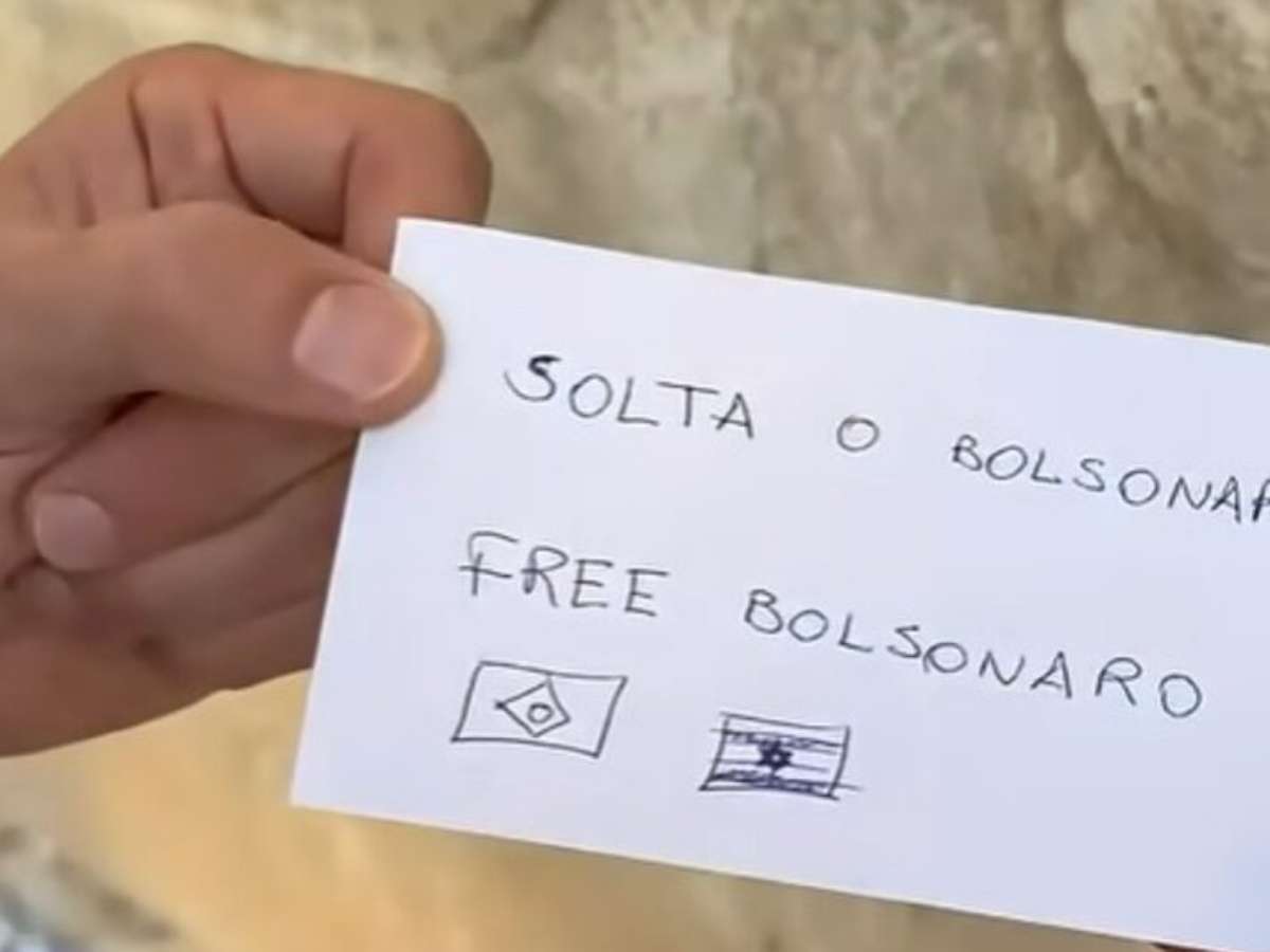 Para a câmera, ele mostra o bilhete com a mensagem: "Solta Bolsonaro" e "Free Bolsonaro" (Liberte Bolsonaro, em inglês), com as bandeiras do Brasil e de Israel desenhadas abaixo das duas frases. O vídeo foi postado nas suas redes na última quinta-feira, 4.