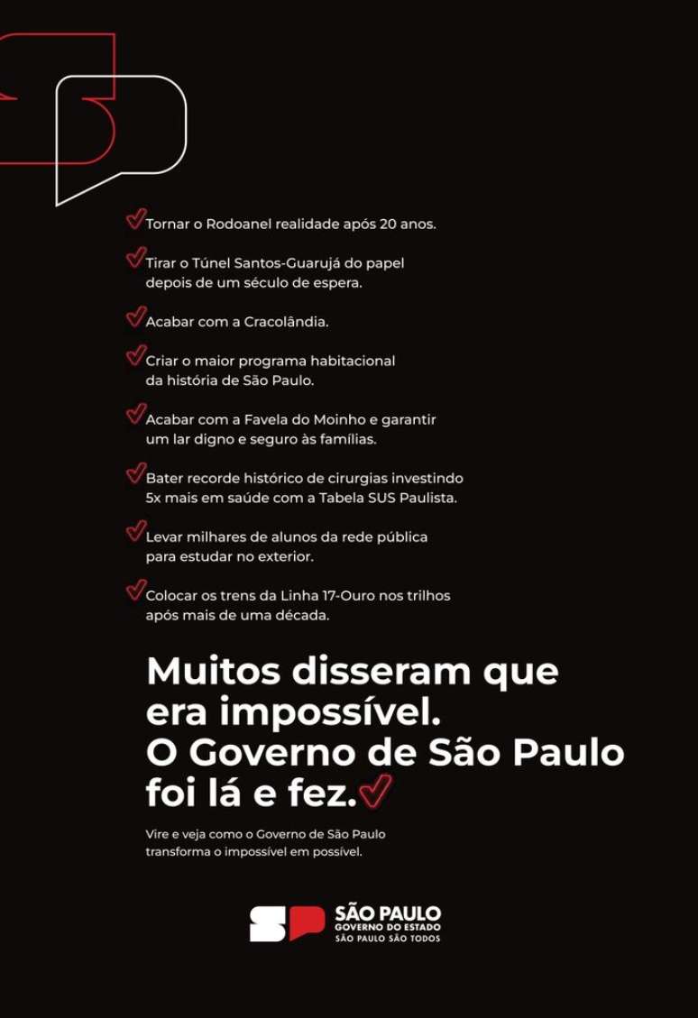 Em coletiva de imprensa no Palácio dos Bandeirantes, o governador reproduziu o tom da campanha - por ora apenas publicitária - divulgada na capa promocional de diversos jornais.