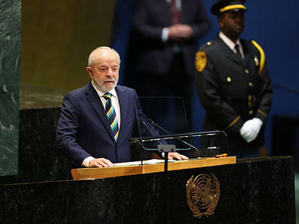 O presidente do Brasil, Luiz Inácio Lula da Silva, discursa durante o Debate Geral da Assembleia Geral das Nações Unidas na sede da ONU em Nova York, em 23 de setembro de 2025