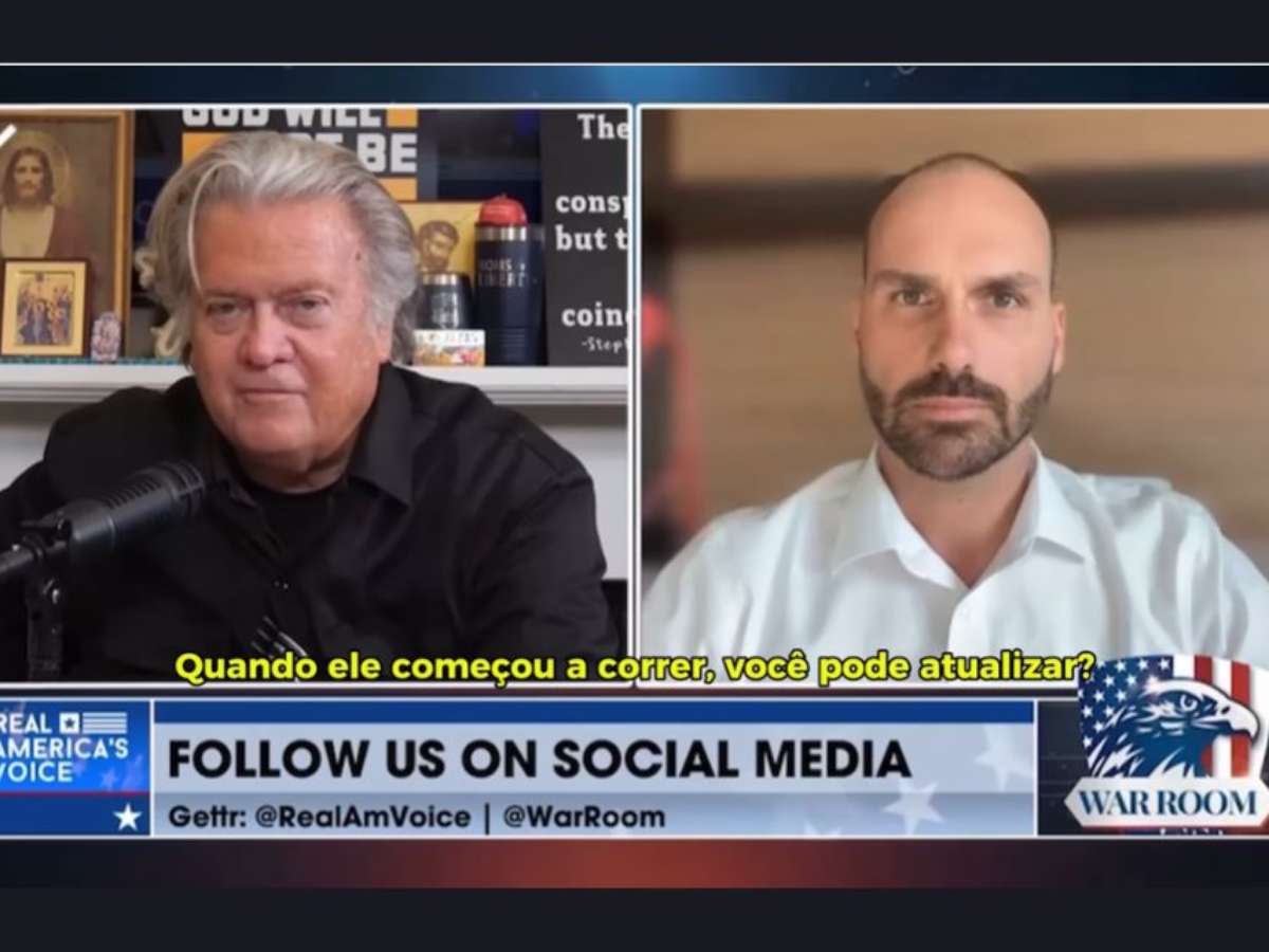 O deputado federal licenciado Eduardo Bolsonaro (PL-SP) criticou o governo de Luiz Inácio Lula da Silva (PT) durante uma entrevista ao ex-estrategista de Donald Trump, Steve Bannon, nesta segunda-feira, 7.