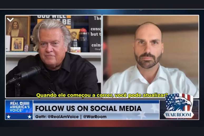 Para Eduardo, “não importa” o que façam com Bolsonaro porque as pessoas querem que alguém da família, ou alguém diretamente ligado a ele “volte a liderar o país”, disparou. Steve Bannon reforçou que avalia que a família Bolsonaro tem força entre os eleitores brasileiros.
