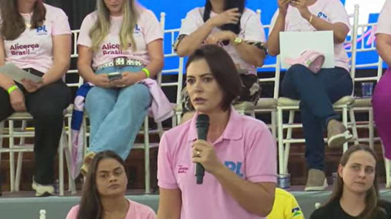 Em evento do PL Mulher, ex-primeira-dama reforçou o apoio ao marido, que está em prisão domiciliar e inelegível