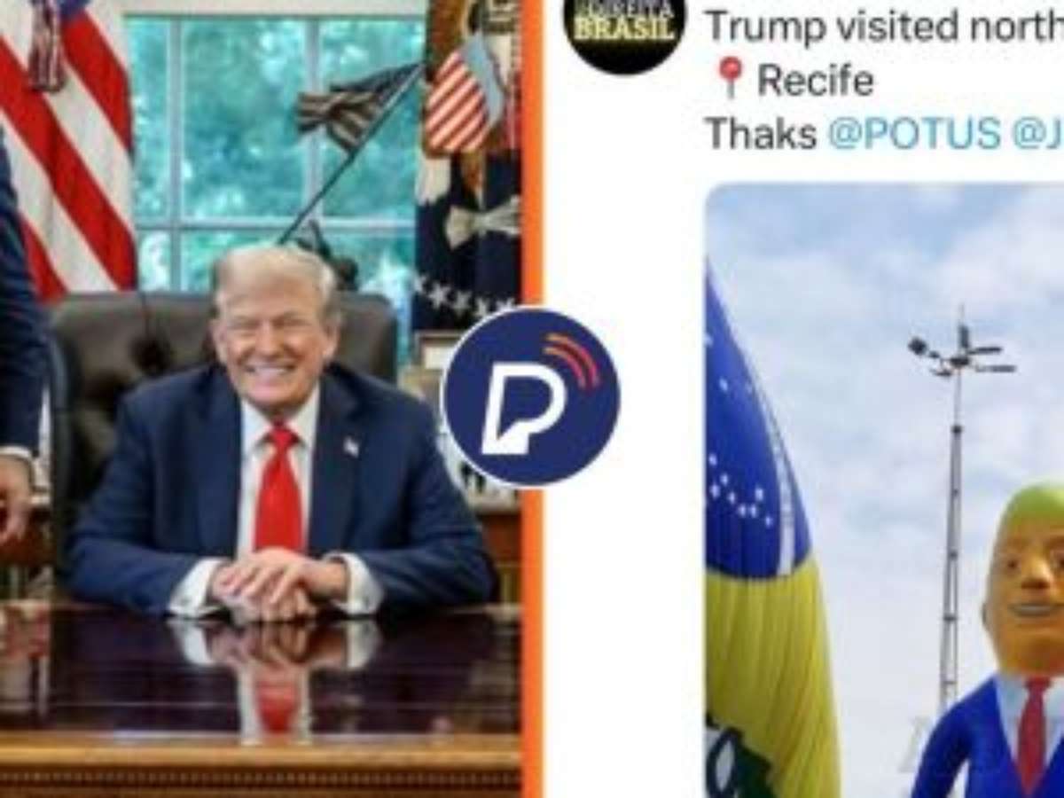 O boneco, que viralizou nas redes no Brasil, mostra Trump com sua tradicional expressão séria e terno escuro, em uma ação que mistura política e folclore local.