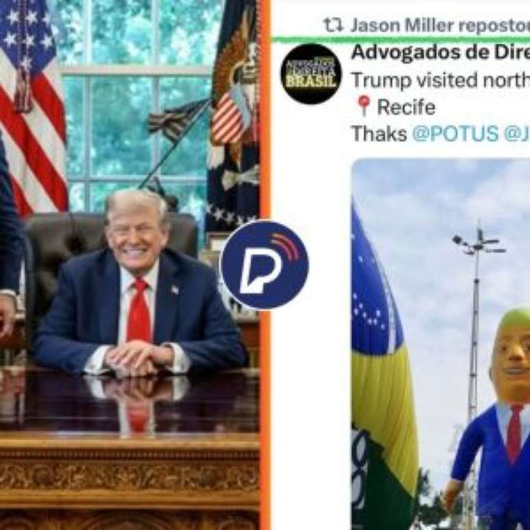 Jason Miller, principal executivo da SHW Partners LLC e ex-conselheiro sênior de Donald Trump, repostou em suas redes sociais uma imagem do boneco inflável do ex-presidente norte-americano exibido no Recife.