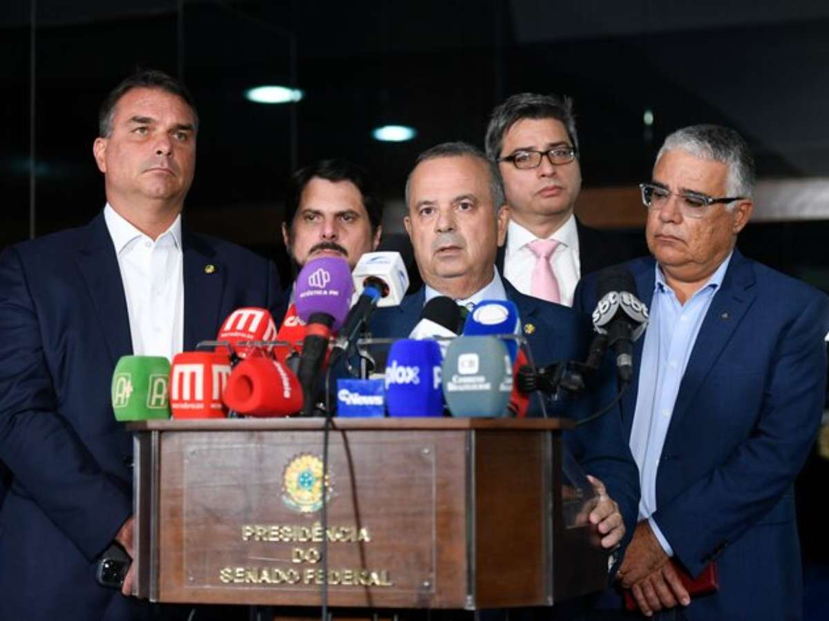 "Sei que vocês estão aí com o coração um pouco apertado pela decisão que ele tomou, mas tenho a consciência, certeza, que ele está fazendo a escolha pelo Brasil, porque nós vamos resgatar juntos, a partir de 2027, esse país das garras do 'Partido das Trevas'", afirmou Flávio.