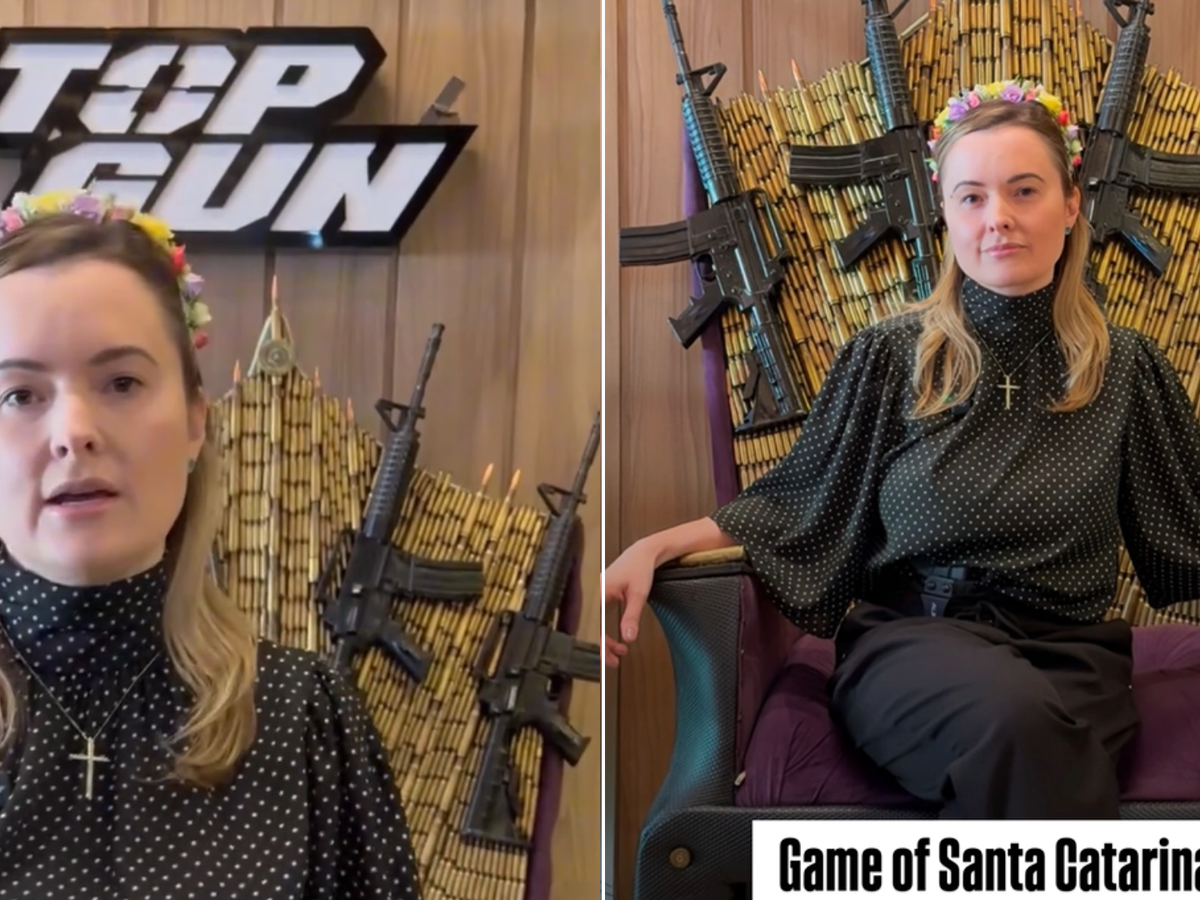 'Game of Santa Catarina': deputada Júlia Zanatta posa em cadeira com réplicas de fuzis