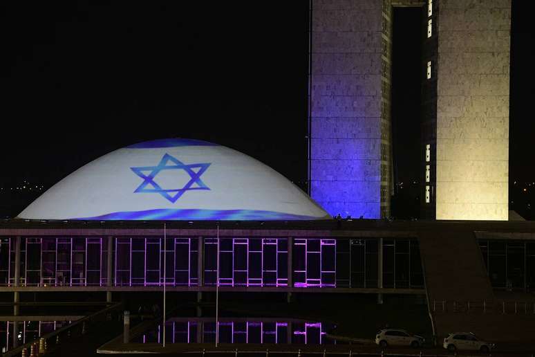 A bandeira de Israel foi projetada na cúpula do Senado na noite deste domingo, 8. A homenagem ocorreu um dia após ataque do grupo terrorista Hamas ao sul de Israel, no sábado, 7, durante um festival de música. Foram encontrados 260 corpos no local, segundo a organização de busca e resgate Zaka, citada pelos meios de comunicação israelenses.