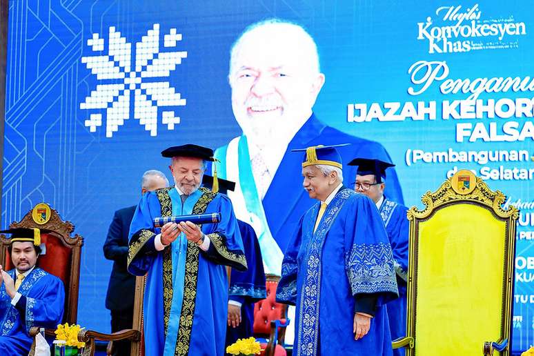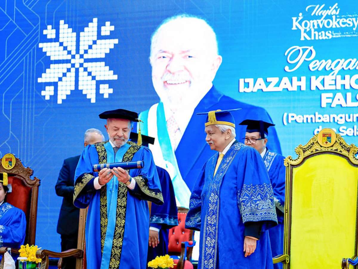 O presidente Luiz Inácio Lula da Silva (PT) recebeu neste sábado, 25, na capital da Malásia, Kuala Lumpur, o título de Doutor Honoris Causa em Desenvolvimento Internacional e Sul Global pela Universidade Nacional da Malásia (UKM). A homenagem reconhece a trajetória política de Lula e sua atuação em benefício da inclusão social, do combate à fome e da cooperação internacional.