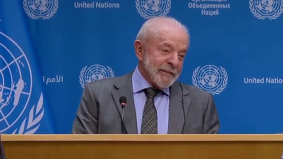 O presidente falou nesta quarta-feira, 24, na ONU, sobre a possibilidade de se reunir com Donald Trump. Ao ser questionado sobre o tratamento que receberá do presidente dos EUA, Lula afirmou que espera respeito. "Não há porquê ter brincadeira em uma relação de dois homens de 80 anos de idade", afirmou. Em seguida, o presidente brasileiro brincou dizendo que ele e Trump são "dois homens que se sentem muito jovens". Reprodução/Canal Gov/Youtube