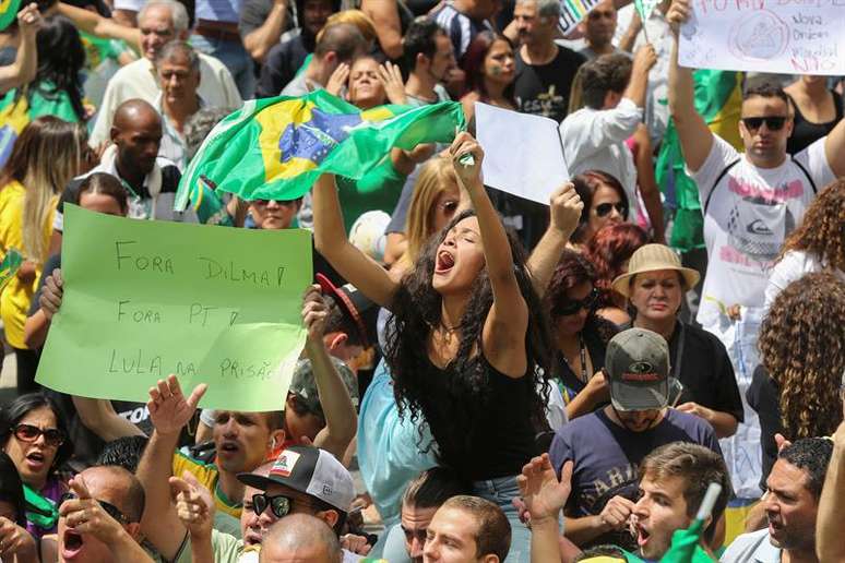 Muitos carregam bandeiras do Brasil e alguns vestem camisas da seleção brasileira. Os manifestantes gritam palavras de ordem e fazem barulho com apitos e cornetas. Os principais alvos do protesto são o ex-presidente Luiz Inácio Lula da Silva, que assumiu há pouco a chefia da Casa Civil, e a presidenta Dilma Rousseff.