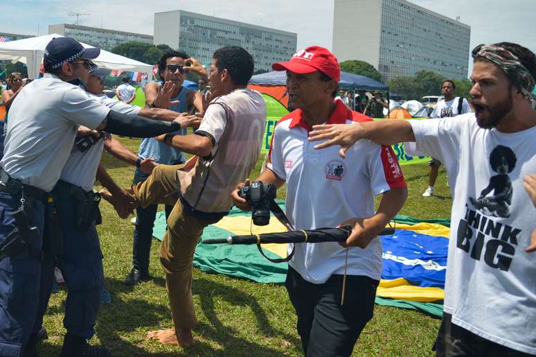 Após o tumulto, a marcha seguiu em direção ao Ginásio Nilson Nelson, de onde partiu na manhã de hoje.