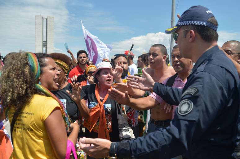 Uma confusão no início da tarde de hoje causou pânico e terminou com a detenção de dois policiais civis no momento em que a Marcha das Mulheres Negras chegava à Praça dos Três Poderes.