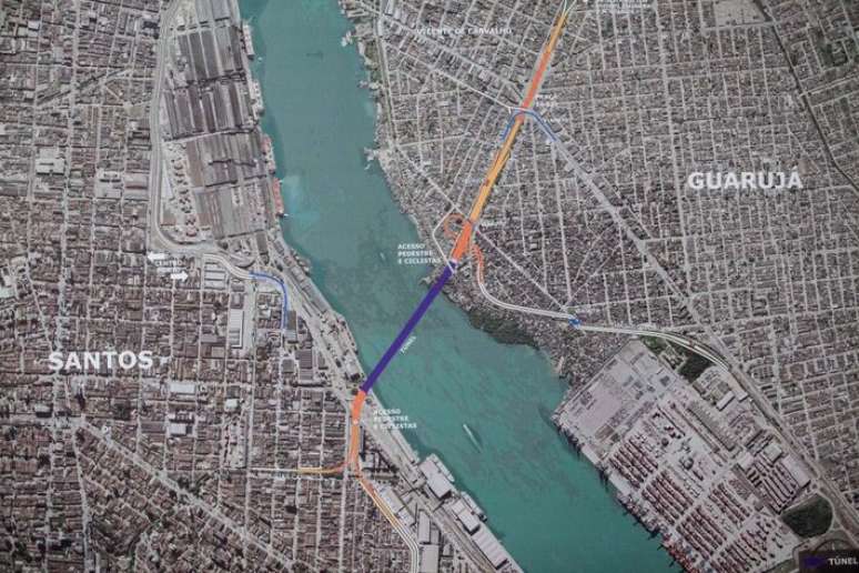 O projeto do túnel imerso ligando os municípios será executado por meio de parceria público-privada (PPP), com valor de investimento estimado em R$ 5,96 bilhões. Desse valor, R$ 5,13 bilhões serão divididos entre os governos de SP e o federal. O restante será da concessionária que vencer o leilão previsto para ser realizado em agosto. A futura empresa será responsável pela construção, operação e manutenção do ativo.