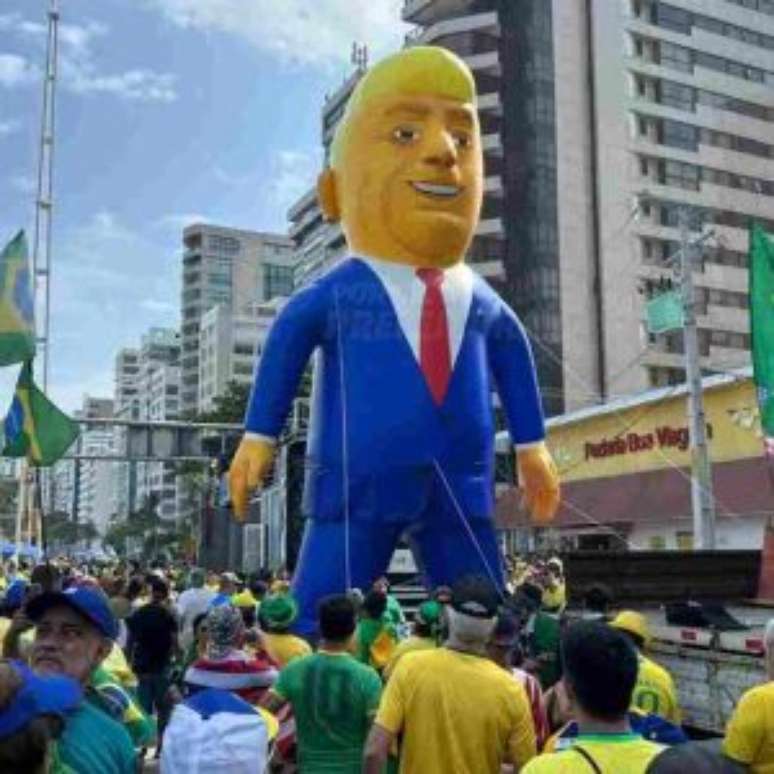O destaque da manifestação foi a presença de um boneco gigante do ex-presidente dos Estados Unidos, Donald Trump, erguido pelos participantes. O símbolo, exibido em meio a bandeiras do Brasil e camisas da seleção, foi recebido com aplausos e gritos de apoio.