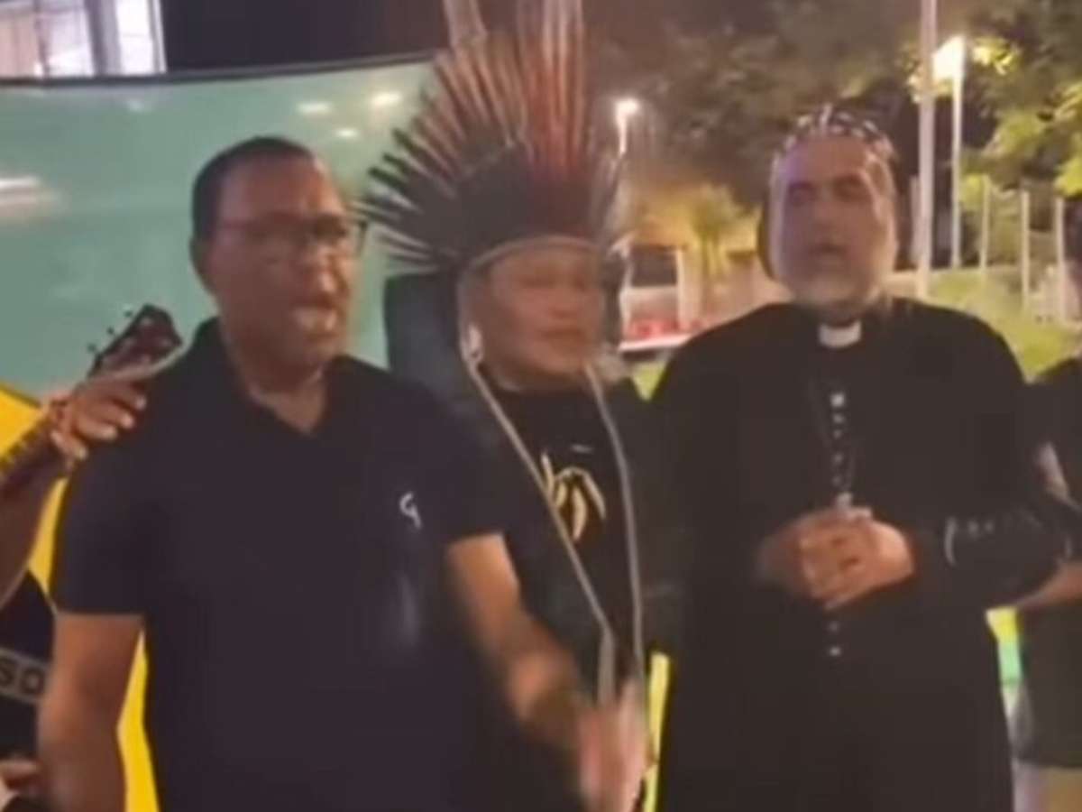 Padre Kelmon faz oração do lado de fora de hospital onde Bolsonaro está internado em Brasília