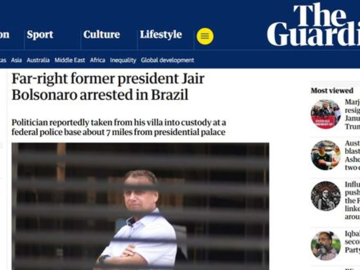 O britânico The Guardian destacou a prisão do Bolsonaro em sua homepage, com o título "Ex-presidente de extrema-direita Jair Bolsonaro é preso no Brasil". No texto, apontou que o motivo da prisão não estava claro inicialmente e contextualizou a convocação de uma vigília pelo senador Flávio Bolsonaro (PL-RJ).