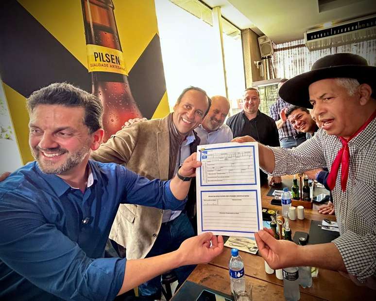 Lideranças do PSDB gaúcho realizaram, nesta terça-feira (19), um almoço no Chalé da Praça XV, em Porto Alegre, para reforçar o convite de filiação ao prefeito de Guaíba, Marcelo Maranata. Durante o encontro, vereadores, prefeitos, secretários e dirigentes da sigla de diferentes municípios entregaram simbolicamente ao gestor uma ficha de filiação e um pin do partido, em gesto de acolhimento político.