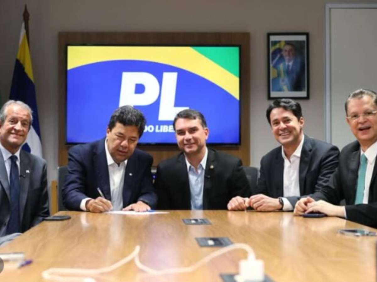 A filiação do deputado ao PL ocorreu nesta quarta em Brasília e contou com a presença de Flávio e do presidente nacional do PL, Valdemar Costa Neto.